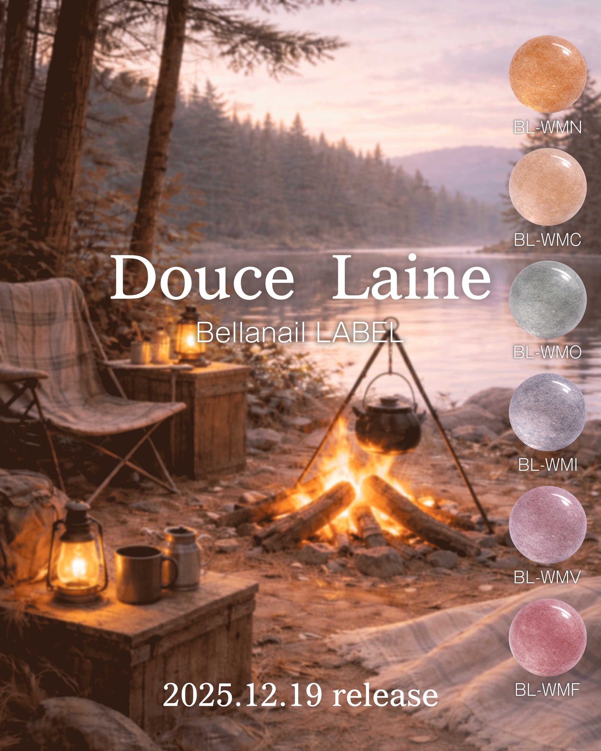 冬の空気を含んだモヘアのように、淡く・優しく・ふわりと溶ける質感。温もりを感じる淡いカラーに静かに煌めく細かなラメで指先にほのかな温もりをプラスします。